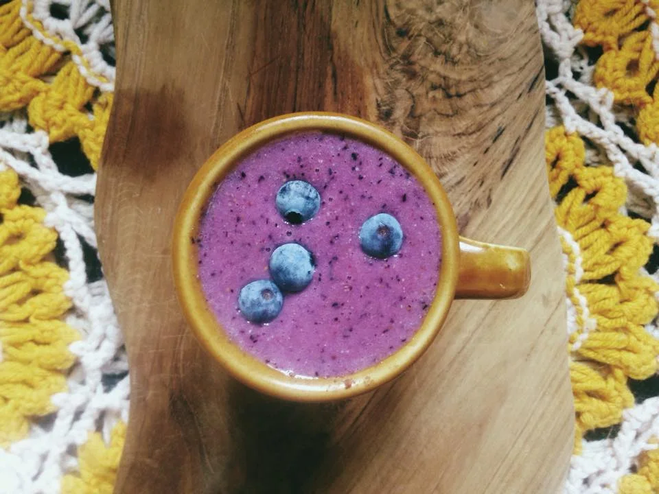 ~Blend all ingredients together in high powered blender, and top with few blueberries.